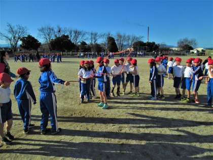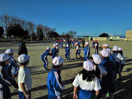 1月9日(木)朝の時間は運動集会で長縄をしました。学級ごとに跳べた回数を数えます。3学期になって初めての運動集会です。クラスごとに輪になって声をかけ合って、体が温かくなりました。写真は2年1組と2年2組です。