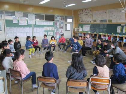 1月23日(木)2年生の授業の様子です。外国語活動の授業です。2年1組は絵本に出てくるいろいろな食べ物を使って、2年2組は英語版の上毛カルタを使って、英語に慣れ親しむ活動をしているところです。