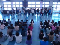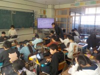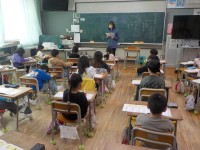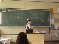 6年生が5年生へ修学旅行について発表しました。自分たちが作ったスライドをもとに、...