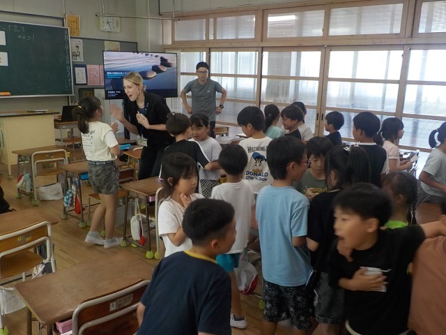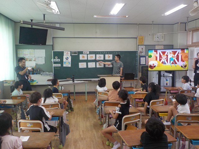 その後で、英語で動物の鳴き声をしながら、同じ仲間の動物同士でグループを作りました。