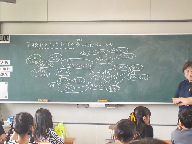 「芝根小をもっとよくするには、どんなことをすればいいか」から考えをみんなで出し合いました。