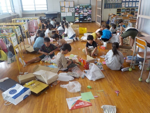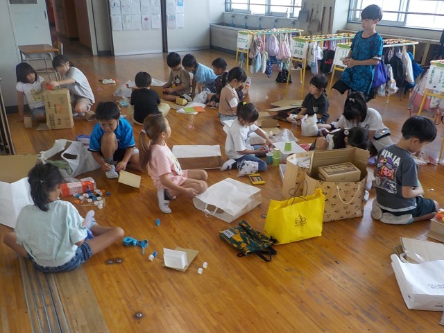2年生が1年生を楽しませるために、いろいろなおもちゃを手作りしていました。