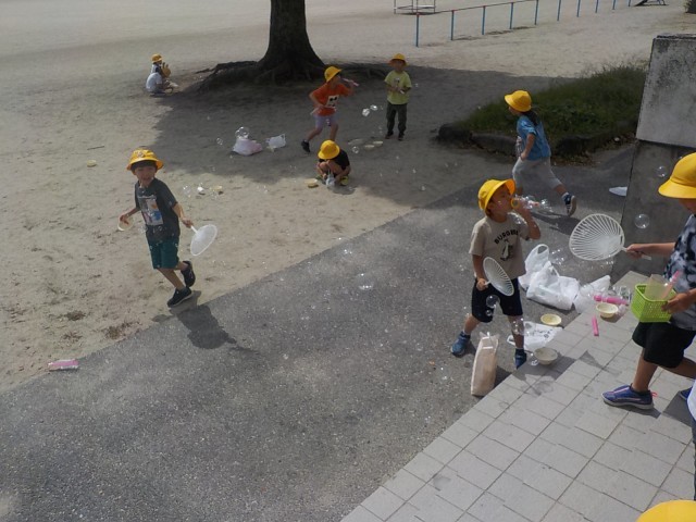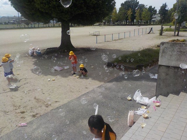 とっても楽しくみんなでシャボン玉を飛ばしていました、