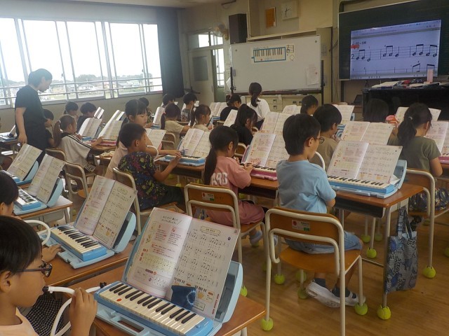 どの鍵盤をどの指を使うのかを確認しながら一生懸命に弾いていました。