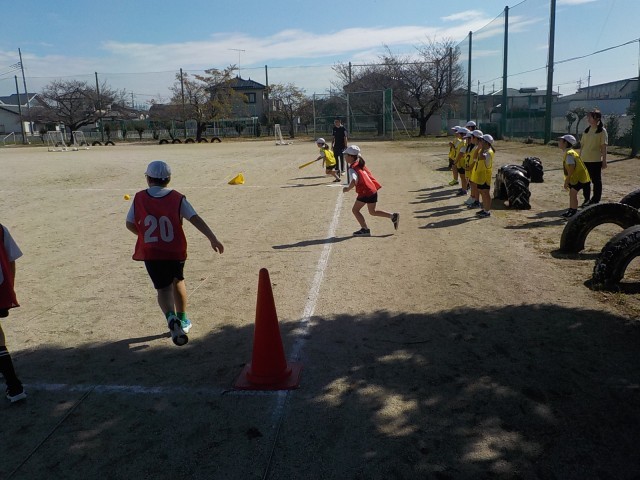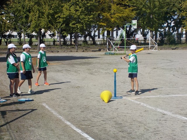 ティーの上にボールを置いて、バッターがボールを打ちます。