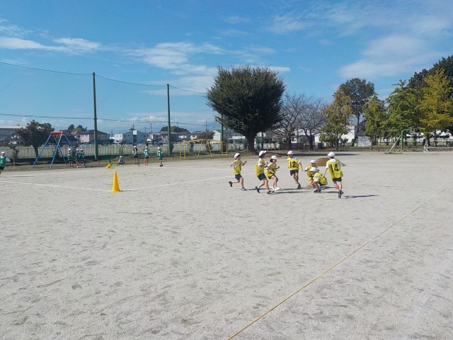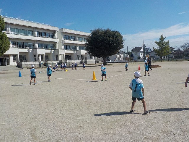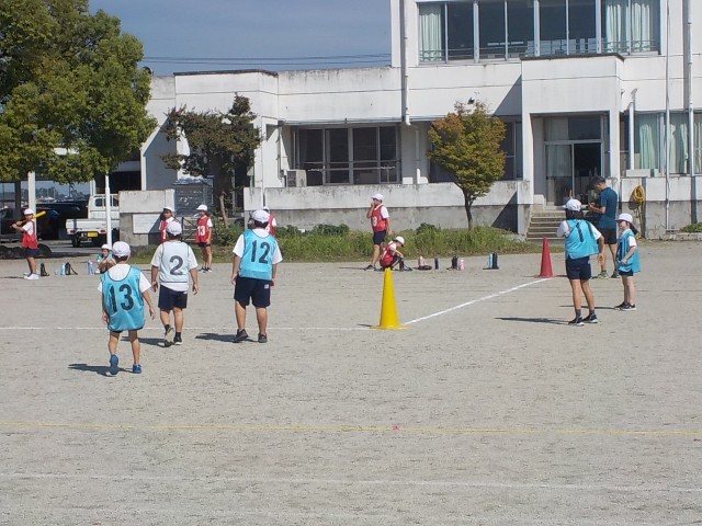打ったボールを守備側のだれかががとったときに、守備側全員がボールのところに集まるとアウトになります。