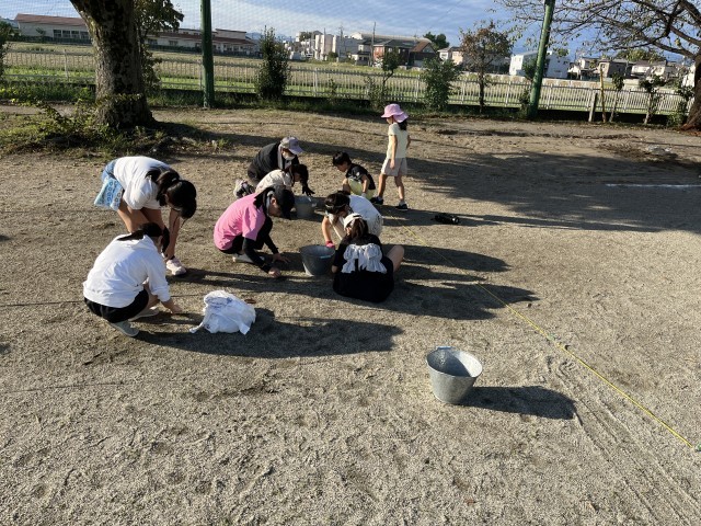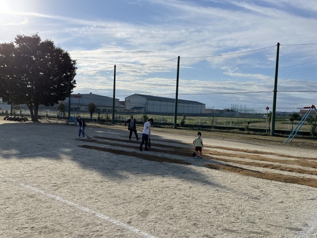 10月に運動会が行われるので、グランドの整地作業を行いました。
