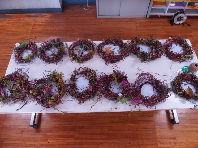 とてもかわいらしいリースができあがって、みんなとっても満足です。
