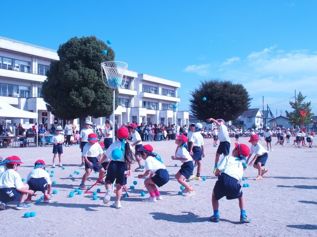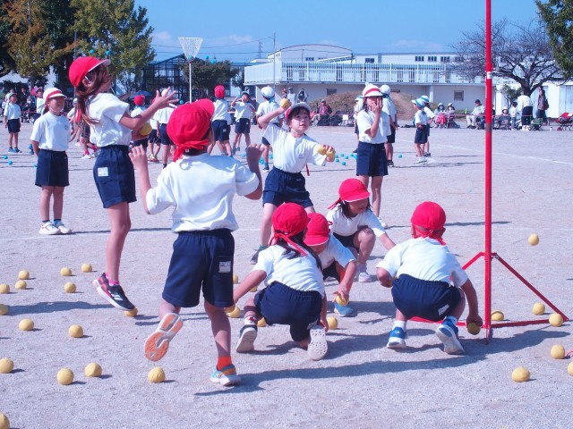 とってもかわいい玉入れでしたね。ダンスを踊って、玉をかごに投げ入れる。