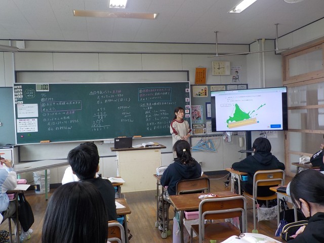 最初に北海道のおよその面積を求めた後に、体積へと学習を進めました。