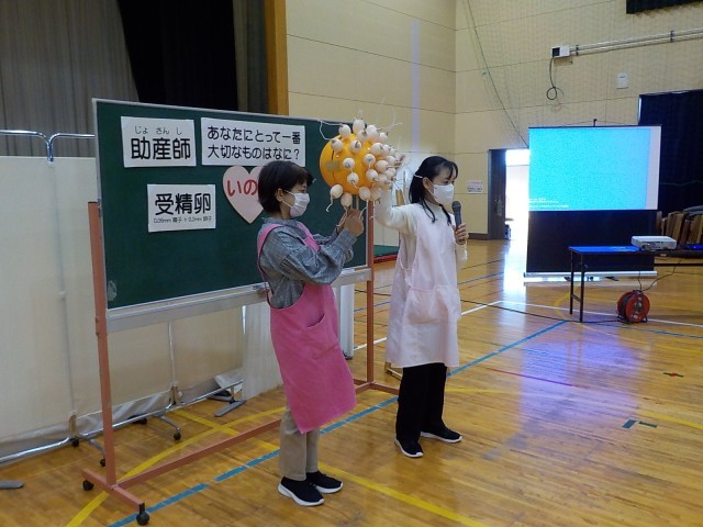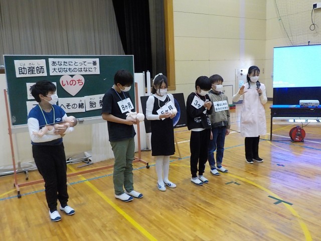 5年生の児童と保護者の方に参加していただき、県助産師会のかたに来校していただき、「いのちを育む授業」を行いました。