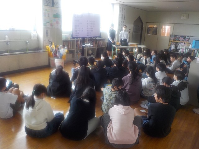 この日は6年生の授業に出て、中学校生活の様子を伝えてくれました。