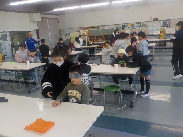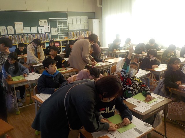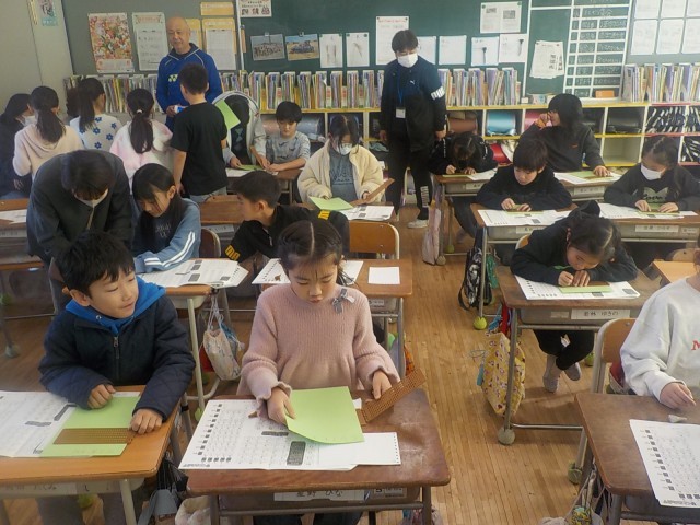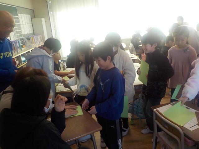 点字体験の最後に「ありがとう」を自分で点字を打って講師の方に読んでらった児童がいました。