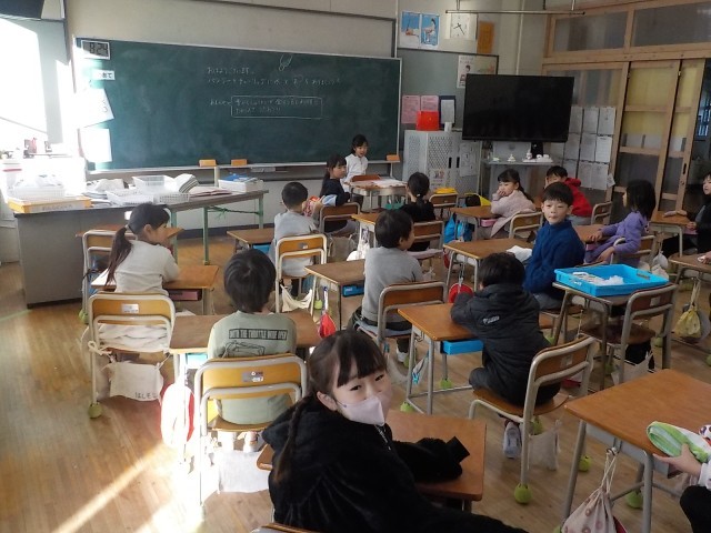 1年生が健康観察を朝の時間に行っていました。