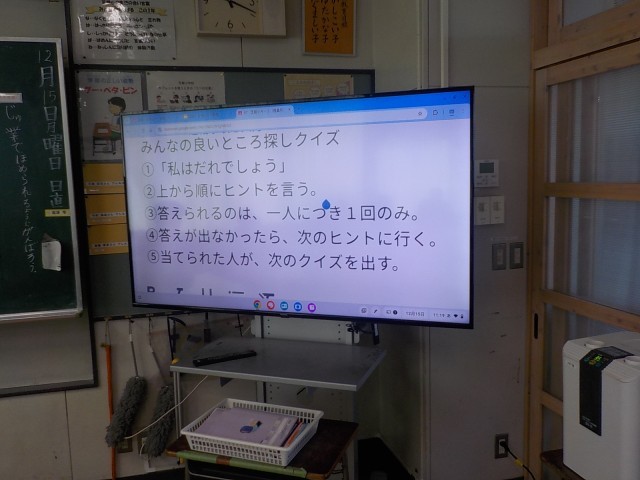 子供たち同士で見つけたいいところをクイズ形式にして楽しんでいました。