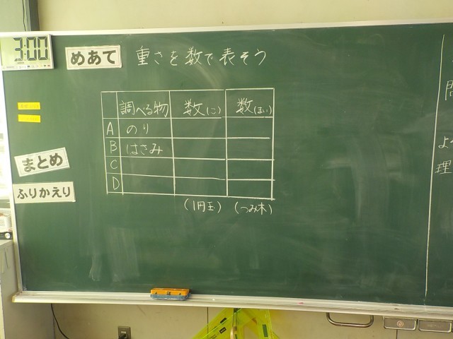それぞれ積み木と1円玉何個分の重さになったかな?