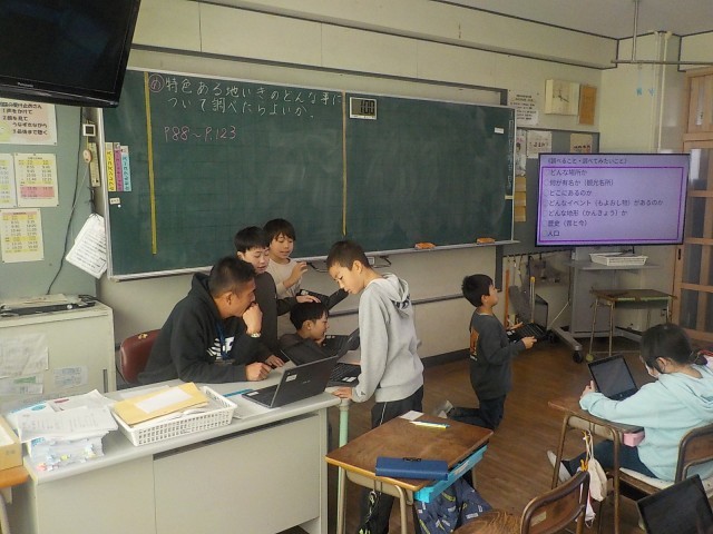 4年生が社会科で特色ある地域のことについて調べていました。