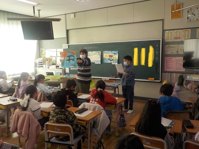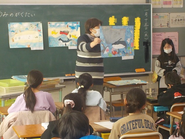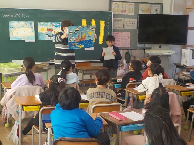 3年生が読書感想画の鑑賞会をしていました。