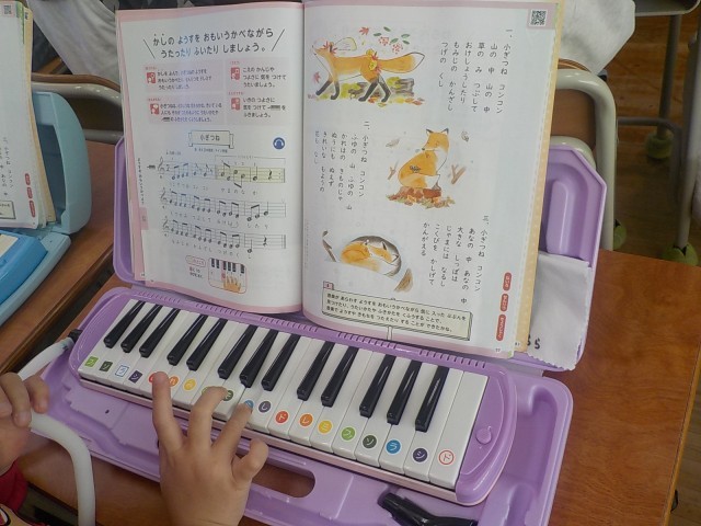 2年生が音楽で「小ぎつね」を学習していました。