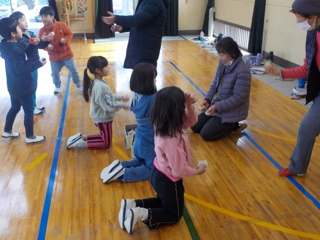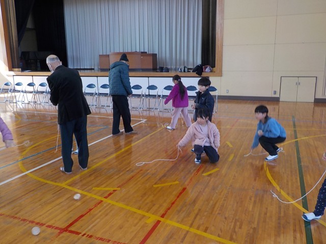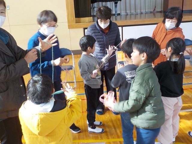 地域の老人会の方に来ていただき、1年生と一緒に昔遊びをしまいた。