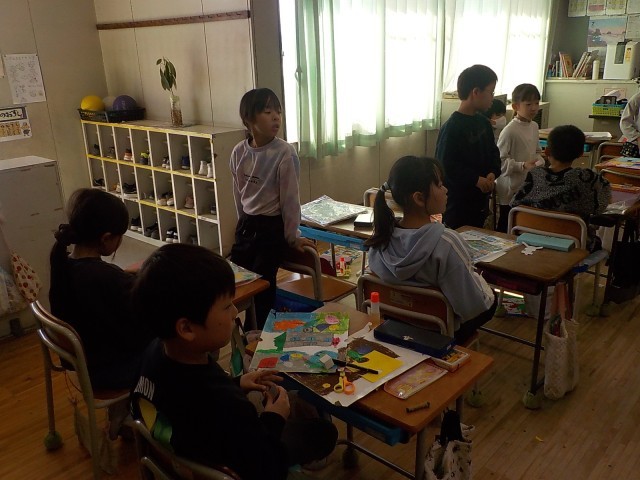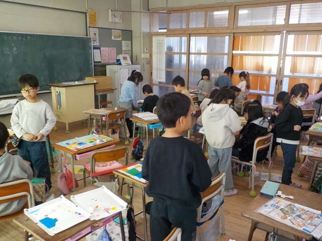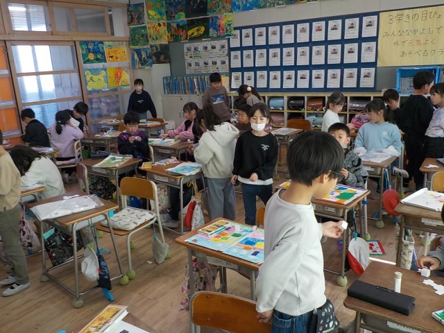 すごろくのマスに自分で考えたお話しが書かれていて、ゴールをするとお話が完成するようになっています。