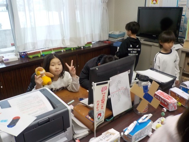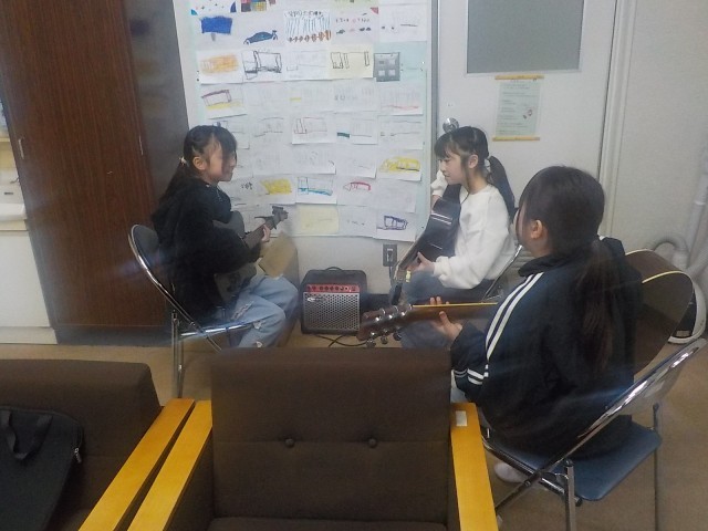 みんなお絵描きをしたり、ギターを弾いたり、校長先生気分を味わったりしています。