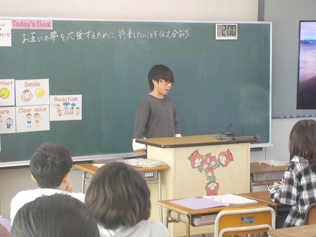 6年生が英語で「お互いの夢を応援するために、将来したいことを伝え合おう」の発表をしていました。
