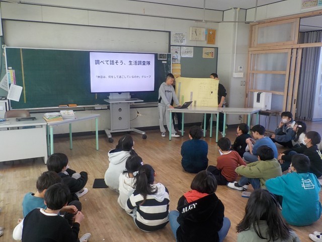 4年生が国語で、生活調査隊発表会をしていました。