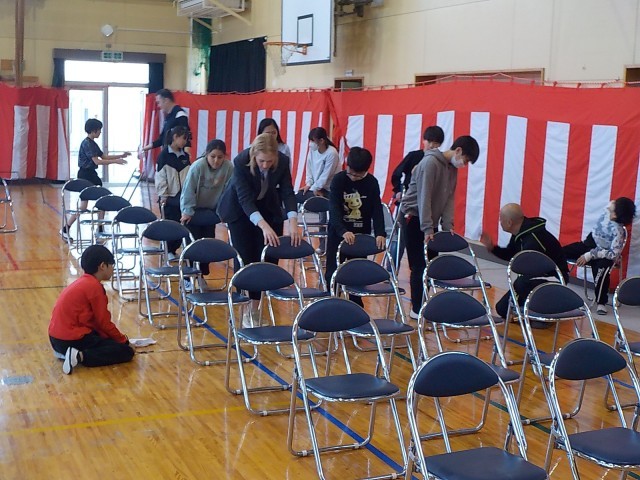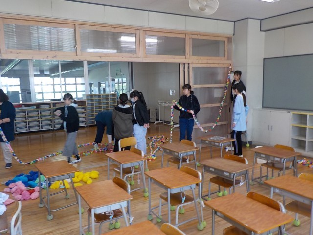 6年生が入学式の準備をしていました。