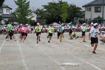 3・4年生の団リレー、5・6年生の団リレー、閉会式です。今年の優勝は榛名団、準優勝は赤城団でした。みんなよく頑張りました。