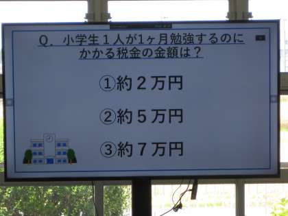 6年生が租税教室に参加しました。町役場の方が、「クイズ」、「税金の使い方」、「税金がなくなったら」など、様々な角度からお話ししてくれました。とてもわかりやすかったことと思います。