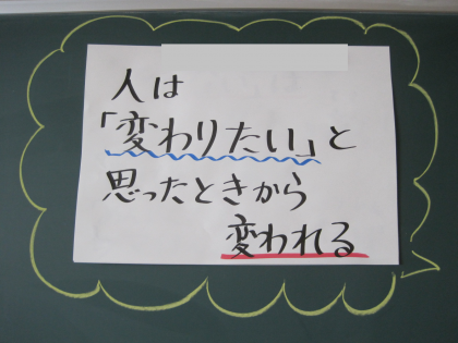 ある教室の掲示物です。担任からの意欲を引き出すメッセージ、児童が考えたよりよい...