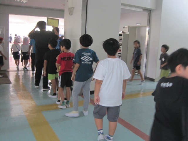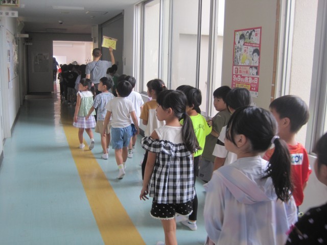 今日は、不審者侵入時を想定した避難訓練を実施しました。子どもたちが安全かつ迅速に避難できる誘導、教職員の対応、連絡体制等を確認しました。子どもたちは静かに落ち着いて安全な集合場所への移動をすることができました。休み時間や登下校中にもし不審な人がいた場合は、その場を離れて逃げる、大人に助けを求めるなど、自分の身を守ることを第一に行動することを確認しました。