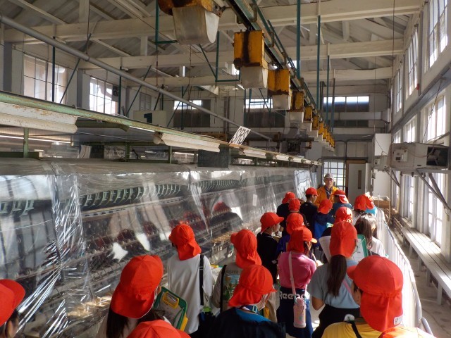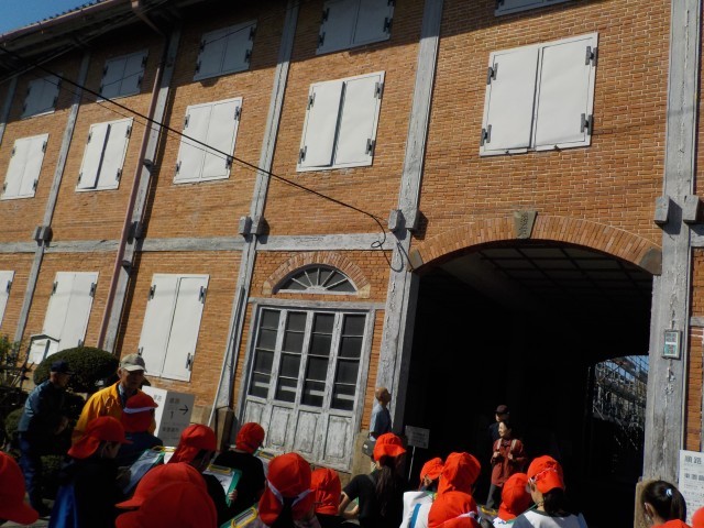 4年生は、富岡製糸場、県立自然史博物館へ遠足に行ってきました。待ちに待った遠足、朝から元気いっぱいに出発しました。富岡製糸場に到着すると、解説員さんから歴史や建物についてお話を聞きながら学習しました。その後、班別で西置繭所等を見学しました。解説員さんに繭玉を触らせてもらい、興味深くじっくり形や感触を確かめていました。