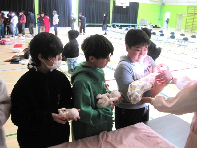 群馬県助産師会の方を講師にお招きし、「いのちの大切さ」についてお話をしていただきました。お母さんのお腹の中でいのちのスタートから約10ヶ月で2000倍にも成長すること、生まれるときもお母さんとともに、自分も一生懸命頑張って生まれてきたこと、それぞれみんな自分のいのちは、世界でたった一つの宝物であることなど丁寧にお話をしてくださいました。VTRやロールプレイで、赤ちゃんが実際に産まれてくる瞬間や家族が誕生を喜んでいる様子を見ながら自分と重ねて考えることができたようです。最後に「生きているだけで100点満点」ということばをプレゼントしていただきました。終了後、赤ちゃんのお人形を全員が抱っこして、実際の重さや大きさを体感しました。緊張しながらも優しい表情でそっと大事に抱っこしていて、自分のこれまでの成長を振り返り、いのちの大切さについて考える機会となりました。ご家庭でもお子さんの生まれたときの喜びや成長の様子を一緒に話していただき、あらためて愛情を言葉にして伝えていただければと思います。