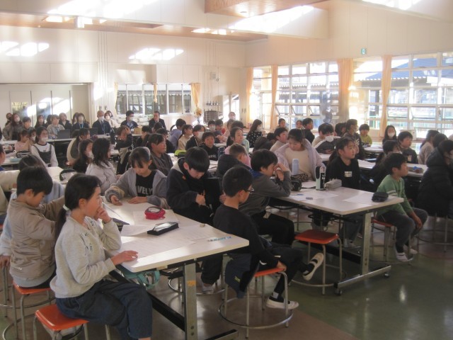 子どもたちのプレゼンテーションは、ケアコムの皆さんの他に、認知症や介護のこと、相手に寄り添い思いやる気持ちをお話してくださった群馬医療福祉大学短期大学の先生、町の議員さん、学校評議員の皆様、保護者の皆様、たくさんの方に聴いていただくことができました。ケアコムさんはじめ参加していただいた皆様から、「困っている人の困り感に気づこうとする心、少しでもなんとか力になりたいという温かい気持ちが伝わる素晴らしい提案だった。」とお褒めのことばをいただきました。また、ケアコムさんが、プレゼンテーションの中から商品化につながるアイディアを会社に戻って検討してくださるとのことです。更に、県や全国の視覚障害、聴覚障害等の協議会ともこの活動を共有してくださるとのことでした。どのグループも温かい気持ちを持って主体的に取り組み、中間発表より更にブラッシュアップした内容を発表してくれました。今後、この活動を機に自分の身近な日常生活の中で、気づき、共に考え、自ら行動することを実践につなげていってほしいと願っています。