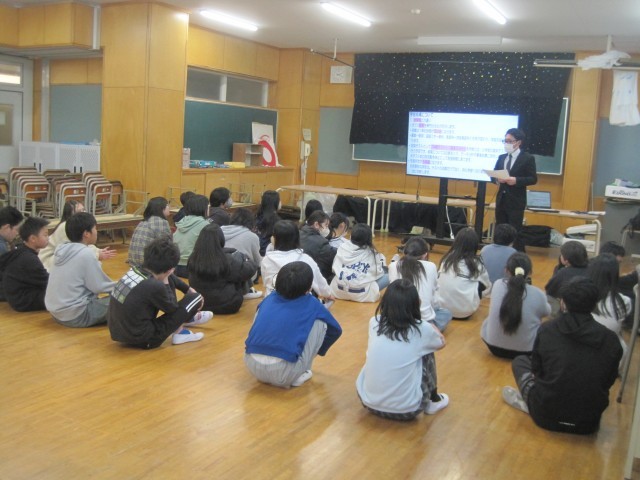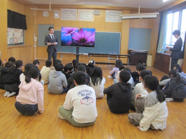 中学校入学に向けて、玉中、南中の先生方が中学校の生活について、それぞれお話をしてくださいました。中学校の授業や行事、部活動などの様子を前のめりの姿勢で聴いていました。子ども達の背中からわくわく感が感じられました。新たな生活は期待と不安が入り交じりますが、中学校の先生が楽しくお話してくれて、質問にも丁寧に答えていただいたので、期待が大きく膨らんだことと思います。中学校への気持ちを高めるとともに、6年生として残りの1日1日を大切に過ごしてほしいと思います。