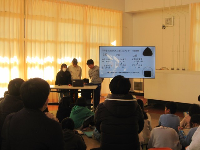 ながら考えてきました。今日はその中間発表を保護者の皆様に聴いていただきました。自分たちで課題解決に向けてアンケートをとったり試行実践を行ったりして検証を進め、今後の最終提案の内容を6年生で実現化していきます。試行実践を通してわかったこと、上手くいかなかったことも含めて挑戦したこと自体を「楽しかった」と感想を伝えていました。今後更によりよい学校生活に向けて、具体的提案につなげてくれることを楽しみにしています。