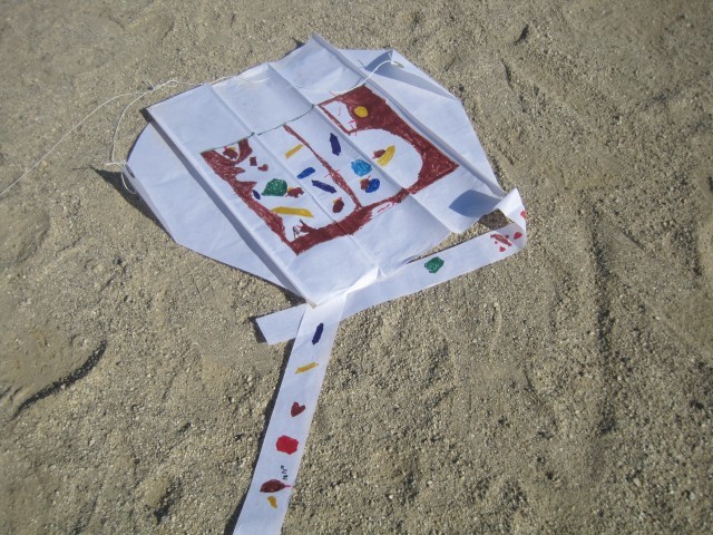 1年生 風に乗って凧あげに挑戦!