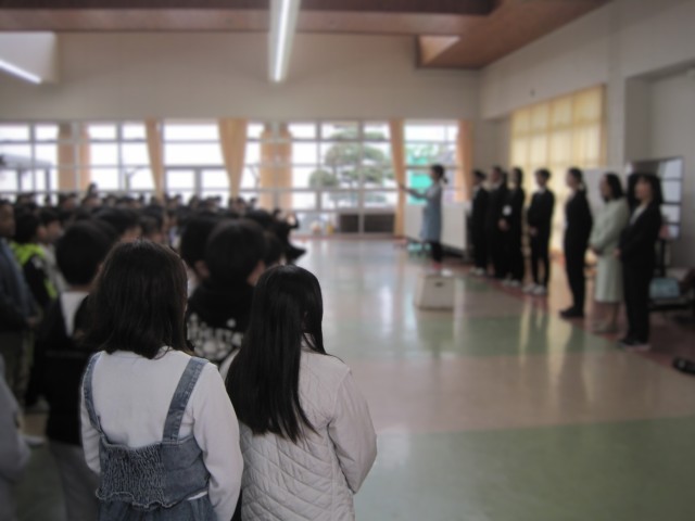 令和7年度修了式と離退任式を行いました。いつもいつも感心している大きな声を響かせて一生懸命歌う校歌。今日も1年の締めくくりにふさわしい素晴らしい歌声でした。