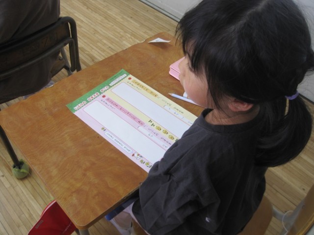 先生の示範のあと、自分の名前を丁寧に書いていました。これから何千回何万回と自分の名前を書いていきます。