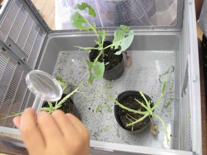 今はアオムシの観察をしています。