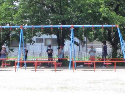 今日の音楽の授業は、校庭の南にある桜の木の下で行いました。