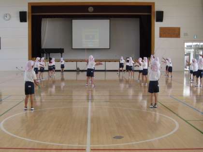 臨時休業中に教職員が創作した「リズム縄跳び」に2年生が挑戦していました。