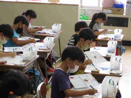 1年生は水彩絵具の使い方を学習しました。