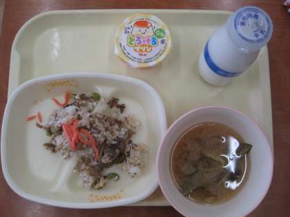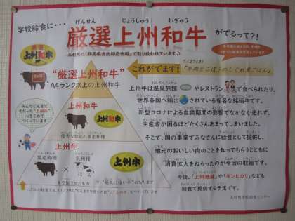 7月27日は、厳選上州和牛が給食にでました。 「牛肉とごぼうのしぐれ煮ごはん」です。