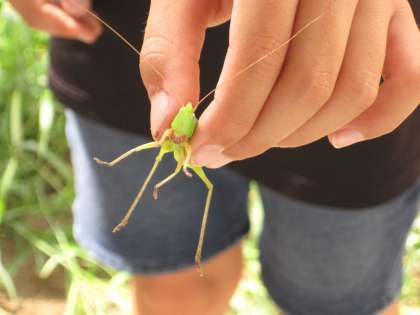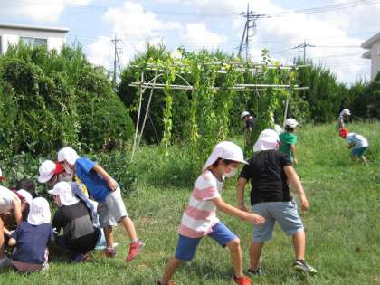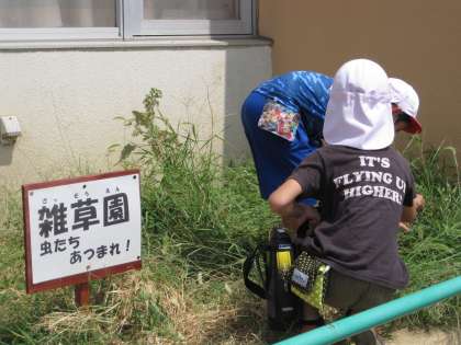 2年生では、「生きものをさがしに行こう」という単元で、秋の虫探しをしています。職員室と校長室の前庭の雑草園でも虫探しをしました。