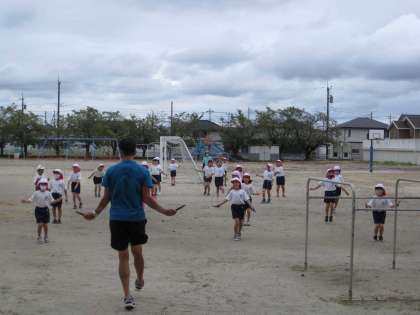 曲に合わせて「リズムなわとび(中央小バージョン)」を練習しています。