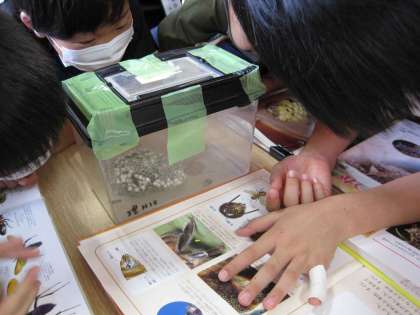 今週の図書室 公開日 2020/09/03 更新日 2020/09/03 学校日記 本物のハチの巣を展示しています。 観察ケースのとなりには、ハチのページを開いた昆虫図鑑がおいてあります。 ハチの巣は六角形がきれいにならんでいます。子供達は興味をもって見ています、