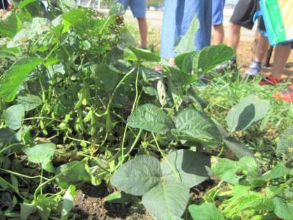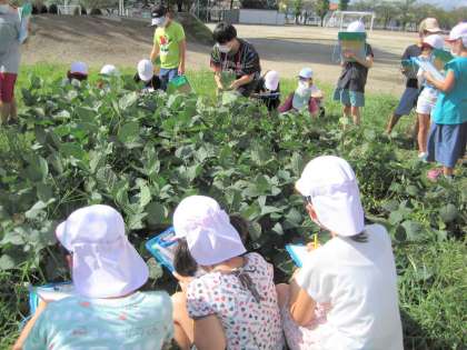 学校の畑で育てている、えだまめの観察をしました。
